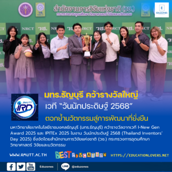 tui sakrapee February 8, 2025 มทร.ธัญบุรี คว้ารางวัลใหญ่เวที “วันนักประดิษฐ์ 2568” ตอกย้ำนวัตกรรมตอบโจทย์การพัฒนาที่ยั่งยืน tui sakrapee February 8, 2025 มหาวิทยาลัยเทคโนโลยีราชมงคลธัญบุรี (มทร.ธัญบุรี) คว้ารางวัลจากเวที I-New Gen Award 2025 และ IPITEx 2025 ในงาน วันนักประดิษฐ์ 2568 (Thailand Inventors’ Day 2025) ซึ่งจัดโดยสำนักงานการวิจัยแห่งชาติ (วช.) กระทรวงการอุดมศึกษา วิทยาศาสตร์ วิจัยและนวัตกรรม ระหว่างวันที่ 2-6 กุมภาพันธ์ 2568 ณ ศูนย์นิทรรศการและการประชุมไบเทค บางนา โดยได้รับถ้วยรางวัลระดับดีเด่น 1 รางวัล… Continue Reading
