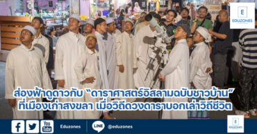 ส่องฟ้าดูดาวกับ “ดาราศาสตร์อิสลามฉบับชาวบ้าน” ที่เมืองเก่าสงขลา เมื่อวิถีดวงดาราบอกเล่าวิถีชีวิต EZ Webmaster February 4, 2025 คำกล่าวที่คุ้นหูอย่าง “ให้ดวงดาวนำทาง” อาจฟังดูเป็นเพียงสำนวน แต่แท้จริงแล้ววิถีชีวิตของเราต่างเกี่ยวโยงคู่ท้องฟ้า โดยเฉพาะมิติด้านศาสนาที่นำไปสู่องค์ความรู้ที่เรียกว่า “ดาราศาสตร์พหุวัฒนธรรม” แววตาของผู้คนที่แหงนมองท้องฟ้าผ่านกล้องโทรทรรศน์ที่ตั้งเรียงรายกลางย่านเมืองเก่าสงขลา สะท้อนความใคร่รู้ปนตื่นเต้นที่ได้เห็นดวงดาวด้วยตาตนเองท่ามกลางฉากหลังของตลาดบ้านบนและมัสยิดอุสาสนอิสลาม พร้อมดวงจันทร์บอลลูนขนาดใหญ่ที่ตั้งตระหง่าน ความงดงามที่ปรากฏเบื้องหน้าไม่เพียงสร้างความประทับใจแก่ชุมชนและนักท่องเที่ยวที่สัญจรผ่านมา แต่ยังจุดประกายความเข้าใจใหม่เกี่ยวกับดาราศาสตร์อิสลาม หรือ “อัลฟาลัก” วิชาวิทยาศาสตร์มรดกของสังคมมุสลิมที่ศึกษาเกี่ยวกับตำแหน่งและการเคลื่อนที่ของวัตถุท้องฟ้า ซึ่งหลอมรวมวิถีชีวิต ความเชื่อ และศาสนาของชาวมุสลิมไว้อย่างลึกซึ้ง กิจกรรม “ดาราศาสตร์อิสลามฉบับชาวบ้าน” จัดขึ้นเป็นครั้งแรกในย่านเมืองเก่าสงขลา โดยหอดูดาวเฉลิมพระเกียรติฯ สงขลา และกลุ่มเครือข่ายสถาปนิกสร้างสรรค์ทักษิณ ผ่านการสนับสนุนโดยบริษัท เชฟรอนประเทศไทยสำรวจและผลิต จำกัด เมื่อปลายเดือนมกราคมที่ผ่านมา ณ ตลาดบ้านบน มัสยิดอุสาสนอิสลาม อำเภอเมือง จังหวัดสงขลา ถือเป็นจุดเริ่มต้นของการผสานศาสตร์และศิลป์ที่เป็นเอกลักษณ์ของเมือง พร้อมเปิดพื้นที่ให้ชุมชนได้ค้นหาความหมายของดาราศาสตร์ที่แฝงอยู่ในวิถีชีวิต “ในทุกๆ วัน วิถีชีวิตของชาวมุสลิมไม่อาจแยกออกจากดาราศาสตร์ได้ เพราะอัลฟาลัก คือรากฐานของศาสนาอิสลามที่บรรพบุรุษใช้กำหนดการปฏิบัติศาสนกิจเพื่อสร้างระเบียบในวิถีชีวิตประจำวัน ทั้งการกำหนดเวลาละหมาด การกำหนดทิศกิบลัต ไปจนถึงการกำหนดวันสำคัญทางศาสนา” นายธีรยุทธ์ ลอยลิบ หัวหน้าหอดูดาวเฉลิมพระเกียรติ 7 รอบ พระชนมพรรษา สงขลา กล่าวว่า… Continue Reading