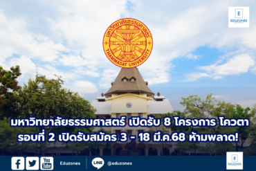 ห้ามพลาด! มหาวิทยาลัยธรรมศาสตร์ จัดเต็ม! เปิดรับ 8 โครงการ โควตารอบที่ 2 เปิดรับสมัคร 3 – 18 มี.ค.68 EZ Webmaster February 2, 2025 มาแล้วกับโควต้า รอบที่ 2 #TCAS68 ของมหาวิทยาลัยธรรมศาสตร์ ปีนี้ เปิดรับสมัครถึง 8 โครงการด้วยกัน สำหรับน้อง ๆ ท่านใดที่กำลังมองหาหรือสนใจโอกาสที่จะเข้าศึกษาต่อในมหาวิทยาลัยชั้นนำ บอกเลยนะคะว่าไม่ควรพลาด และสำหรับใครที่สนใจวันนี้ Eduzones จะมาบอกรายละเอียดของโควต้าและโครงการเหล่านี้ ไปดูกันนน กำหนดการ รับสมัคร : 3-18 มี.ค. 68 ประกาศรายชื่อผู้ผ่านการคัดเลือก : 2 พ.ค. 68 ยืนยันสิทธิ์ : 2-3 พ.ค. 68 ประกาศรายชื่อผู้มีสิทธิ์เข้าศึกษาต่อ : 14 พ.ค. 68 คณะที่เปิดรับ คณะนิติศาสตร์… Continue Reading
