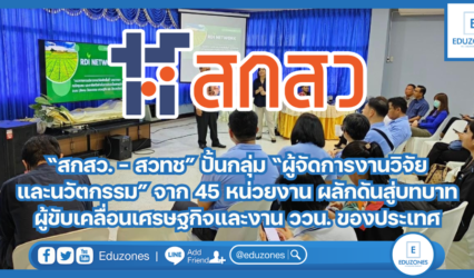 ครู-อาจารย์ “สกสว. – สวทช” ปั้นกลุ่ม “ผู้จัดการงานวิจัยและนวัตกรรม” จาก 45 หน่วยงาน ผลักดันสู่บทบาทผู้ขับเคลื่อนเศรษฐกิจและงาน ววน. ของประเทศ EZ Webmaster May 2, 2024 สำนักงานคณะกรรมการส่งเสริมวิทยาศาสตร์ วิจัยและนวัตกรรม (สกสว.) ร่วมกับ สถาบันพัฒนาบุคลากรแห่งอนาคต สำนักงานพัฒนาวิทยาศาสตร์และเทคโนโลยีแห่งชาติ (สวทช.) จัดกิจกรรมพัฒนาผู้จัดการงานวิจัย พัฒนาและนวัตกรรม หรือ RDI Manager เพื่อให้เกิดการแลกเปลี่ยนประสบการณ์ กลไกการทำงานระหว่างหน่วยงาน ให้สามารถเชื่อมโยงยกระดับการบริหารจัดการงานวิจัยและนวัตกรรมได้เหมาะสมกับบริบทของหน่วยงานในระบบ ววน. พร้อมสร้างความสัมพันธ์ระหว่างบุคลากร ความร่วมมือในการขยายผลการขับเคลื่อนผลงานวิจัยสู่การใช้ประโยชน์ร่วมกับหน่วยงานพันธมิตรทั้งภาครัฐและภาคเอกชน รวมทั้งการส่วนร่วมออกแบบแนวทางการขับเคลื่อนมาตรฐานวิชาชีพของ RDI Managers และกิจกรรมศึกษาดูงาน…