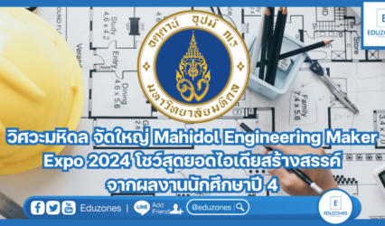 นักศึกษา วิศวะมหิดล จัดใหญ่ Mahidol Engineering Maker Expo 2024 โชว์สุดยอดไอเดียสร้างสรรค์จากผลงานนักศึกษาปี 4 EZ Webmaster May 2, 2024 คณะวิศวกรรมศาสตร์ มหาวิทยาลัยมหิดล เปิดเวที Mahidol Engineering Maker Expo 2024 “Capstone Project Presentation” โชว์ผลงานโครงงานวิศวกรรมของนักศึกษาชั้นปีที่ 4 เพื่อส่งเสริมการแลกเปลี่ยนองค์ความรู้และงานวิจัย รวมถึงเผยแพร่ผลงานวิจัยนวัตกรรมที่ตอบโจทย์การสร้างประโยชน์ต่อสังคม เศรษฐกิจ…