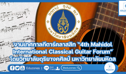 นักศึกษานักเรียน งานเทศกาลกีตาร์คลาสสิก “4th Mahidol International Classical Guitar Forum” โดยวิทยาลัยดุริยางคศิลป์ มหาวิทยาลัยมหิดล EZ Webmaster May 2, 2024 ประชาสัมพันธ์งานเทศกาลกีตาร์คลาสสิก โดยวิทยาลัยดุริยางคศิลป์ มหาวิทยาลัยมหิดล ที่จะจัดขึ้นระหว่างวันที่ 23 – 25 สิงหาคม 2567 ซึ่งครั้งนี้เป็นครั้งที่ 4 ในชื่อ “4th Mahidol International Classical…