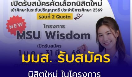 Blogนักศึกษานักเรียนมหาวิทยาลัย มมส. รับสมัคร นิสิตใหม่ ในโครงการ MSU WISDOM EZ Webmaster January 5, 2026 มมส. รับสมัคร นิสิตใหม่ ในโครงการ MSU WISDOM รับสมัคร : 1 ม.ค. – 31 มี.ค.69 ดูเงื่อนไขการสมัคร และสมัครที่นี่…