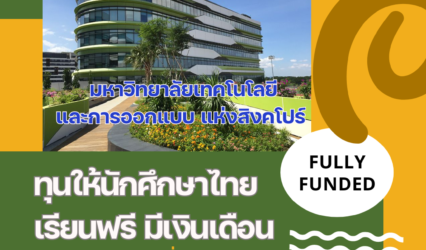 Blogทุนดีดี ม.เทคโนโลยีและการออกแบบแห่งสิงคโปร์ ให้ทุนคนไทยไปศึกษาระดับปริญญาเอก ในสาขาวิศวกรรมศาสตร์ หรือวิทยาศาสตร์และเทคโนโลยี tui sakrapee April 22, 2024 ประกาศ รับสมัครคัดเลือกบุคคลเพื่อรับทุนการศึกษาไปศึกษาวิชา ณ มหาวิทยาลัยเทคโนโลยีและการออกแบบ แห่งสิงคโปร์ (Singapore University of Technology and Design : SUTD) สาธารณรัฐสิงคโปร์ ประจำปีการศึกษา 2567…