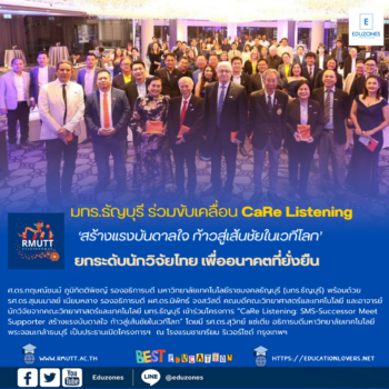 มทร.ธัญบุรี ร่วมขับเคลื่อน CaRe Listening “สร้างแรงบันดาลใจ ก้าวสู่เส้นชัยในเวทีโลก” เพื่ออนาคตที่ยั่งยืน tui sakrapee January 27, 2025 ศ.ดร.กฤษณ์ชนม์ ภูมิกิตติพิชญ์ รองอธิการบดี มหาวิทยาลัยเทคโนโลยีราชมงคลธัญบุรี (มทร.ธัญบุรี) พร้อมด้วย รศ.ดร.สุมนมาลย์ เนียมหลาง รองอธิการบดี ผศ.ดร.นิพัทธ์ จงสวัสดิ์ คณบดีคณะวิทยาศาสตร์และเทคโนโลยี และอาจารย์นักวิจัยจากคณะวิทยาศาสตร์และเทคโนโลยี มทร.ธัญบุรี เข้าร่วมโครงการ “CaRe Listening: SMS-Successor Meet Supporter สร้างแรงบันดาลใจ ก้าวสู่เส้นชัยในเวทีโลก” โดยมี รศ.ดร.สุวิทย์ แซ่เตีย อธิการบดีมหาวิทยาลัยเทคโนโลยีพระจอมเกล้าธนบุรี เป็นประธานเปิดโครงการฯ ที่จัดขึ้นโดยศูนย์เครือข่ายวิจัยนานาชาติ ณ โรงแรมชาเทรียม ริเวอร์ไซด์ กรุงเทพฯ โดยในงานนี้มีการบรรยายและแลกเปลี่ยนประสบการณ์จากนักวิชาการระดับนานาชาติที่ประสบความสำเร็จ การแถลงนโยบายจากผู้นำทางด้านวิจัยและแหล่งทุนสนับสนุน รวมถึงชี้แนวทางการพัฒนานักวิจัยไทยสู่เวทีโลกในอนาคต ซึ่งโครงการนี้ได้รับการสนับสนุนจากกองทุนส่งเสริมวิทยาศาสตร์ วิจัยและนวัตกรรม (สกสว.) และมุ่งยกระดับนักวิจัยไทยให้เป็นแกนนำในเครือข่ายระดับนานาชาติ ทั้งนี้ ในโครงการ CaRe… Continue Reading