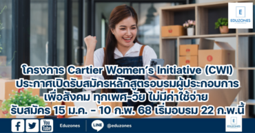 โครงการ Cartier Women’s Initiative (CWI) ประกาศเปิดรับสมัครหลักสูตรอบรมผู้ประกอบการเพื่อสังคม ทุกเพศ-วัย ไม่มีค่าใช้จ่าย รับสมัคร 15 ม.ค. – 10 ก.พ. 68 เริ่มอบรม 22 ก.พ.นี้ EZ Webmaster January 20, 2025 ครั้งแรกของความร่วมมือระหว่าง จุฬาลงกรณ์มหาวิทยาลัย และ คาร์เทียร์ ประเทศไทย ภายใต้โครงการ Cartier Women’s Initiative (CWI) ออกแบบหลักสูตรอบรมผู้ประกอบการเพื่อสังคม Cartier Women’s Initiative Entrepreneurial Program จัดอบรมให้แก่ผู้ประกอบการเพื่อสังคม ที่ดำเนินธุรกิจในระยะเริ่มต้น (ไม่เกิน 6 ปี) เพื่อเสริมความรู้ และพัฒนาทักษะที่จำเป็นให้แก่ผู้ประกอบการเพื่อสังคมโดยเฉพาะ ให้สามารถดำเนินธุรกิจได้อย่างยั่งยืน ต่อยอดสร้างการเติบโตสู่ระดับนานาชาติ และสามารถเข้าร่วมแข่งขันโครงการ Cartier Women’s Initiative ระดับโลกได้ในอนาคต การอบรมหลักสูตร CWI Entrepreneurial Program เปิดรับสมัครตั้งแต่วันที่ 15 มกราคม – 10 กุมภาพันธ์ พ.ศ. 2568 ทางออนไลน์ โดยกรอกใบสมัคร พร้อมอัปโหลดคลิปวิดีโอขนาดสั้น ความยาวไม่เกิน 3 นาที แนะนำตนเองและธุรกิจเพื่อสังคมที่ลิงก์นี้: สมัครเข้าร่วมอบรม หลักสูตร CWI Entrepreneurial Program ประกาศผลผู้มีสิทธิ์เข้าร่วมอบรมในวันเสาร์ที่ 15 กุมภาพันธ์ พ.ศ. 2568 ผ่านทางเว็บไซต์และเฟซบุ๊กเพจของจุฬาลงกรณ์มหาวิทยาลัย (www.chula.ac.th และ www.facebook.com/ChulalongkornUniversity) อบรมระยะสั้น 6 ครั้ง ทุกวันเสาร์ เวลา 13:00 น. –… Continue Reading