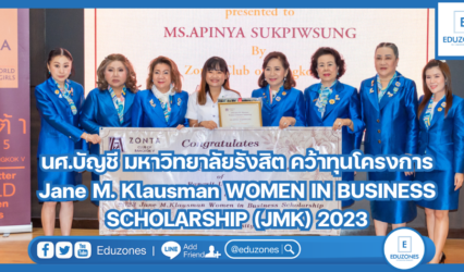 นักศึกษา นศ.บัญชี มหาวิทยาลัยรังสิต คว้าทุนโครงการ Jane M. Klausman WOMEN IN BUSINESS SCHOLARSHIP (JMK) 2023 EZ Webmaster April 3, 2024 นศ.บัญชี มหาวิทยาลัยรังสิต คว้าทุนโครงการ Jane M. Klausman WOMEN IN BUSINESS SCHOLARSHIP (JMK) 2023 ที่มอบทุนสนับสนุนให้กับผู้หญิงเรียนต่อในระดับปริญญาตรีและปริญญาโทด้านการจัดการธุรกิจ โดยคัดเลือกภายใต้หน่วยงานของสโมสรซอนต้ากรุงเทพ 5 นางสาวอภิญญา…