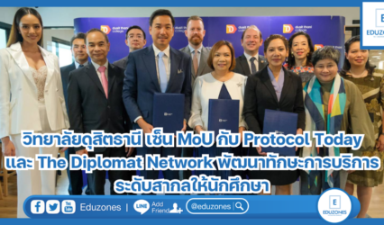 นักศึกษา วิทยาลัยดุสิตธานี เซ็น MoU กับ Protocol Today และ The Diplomat Network พัฒนาทักษะการบริการระดับสากลให้นักศึกษา EZ Webmaster March 22, 2024 เมื่อวันที่ 22 มีนาคม 2567 วิทยาลัยดุสิตธานี สถาบันอุดมศึกษาด้านธุรกิจบริการชั้นแนวหน้าในเครือโรงแรมดุสิตธานี ซึ่งมุ่งมั่นในการปลูกฝังความเป็นสากล (internationalization) ให้แก่นักศึกษา นำโดย ดร. ประวีณา คาไซ รองอธิการบดีฝ่ายกิจการนักศึกษา ได้ลงนามความร่วมมือกับ 2…