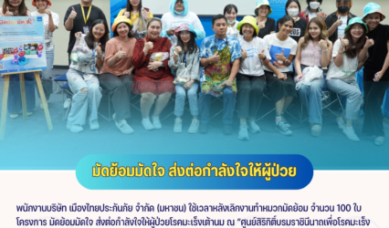 Blogนักศึกษา มทร.ธัญบุรี เมืองไทยประกันภัย มัดย้อมมัดใจ ส่งต่อกำลังใจให้ผู้ป่วยโรคมะเร็งเต้านม tui sakrapee March 18, 2024 ณ สำนักงานใหญ่ บริษัท เมืองไทยประกันภัย จำกัด (มหาชน) พนักงานบริษัท เมืองไทยประกันภัย จำกัด (มหาชน) ใช้เวลาหลังเลิกงานทำหมวกมัดย้อม จำนวน 100 ใบ โครงการ มัดย้อมมัดใจ…