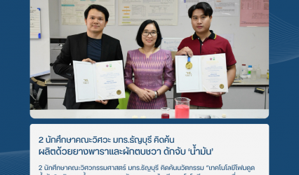 Blogนักศึกษา นวัตกรรม “เทคโนโลยีโฟมดูดน้ำมัน” ผลิตด้วยยางพาราและผักตบชวา ดักจับ ‘น้ำมัน’ tui sakrapee March 5, 2024 2 นักศึกษาคณะวิศวกรรมศาสตร์ มทร.ธัญบุรี คิดค้นนวัตกรรม “เทคโนโลยีโฟมดูดน้ำมัน” ผลิตจากน้ำยางพาราและผักตบชวา ชูไอเดียเทคโนโลยีการเกษตรเพื่อการบำบัดน้ำ เผยจุดเด่น “โฟมยางดักจับเฉพาะน้ำมัน และสามารถใช้ซ้ำมากถึง 50 ครั้ง ส่วนน้ำมันที่ดักจับ นำไปใช้งานต่อได้” การันตีรางวัลเหรียญทอง จากสำนักงานการวิจัยแห่งชาติ (วช.) นายภพธร คล้ายเข็ม…