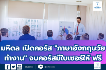 ราชมงคลพระนคร ร่วมสนับสนุนกิจกรรมในงานกระตุ้นเศรษฐกิจรัชดา-ประชาชื่น สำนักงานเขตบางซื่อ tui sakrapeeApril 9, 2026 ดร.ณัฐวรพล รัชสิริวัชรบุล อธิการบดีมหาวิทยาลัยเทคโนโลยีราชมงคลพระนคร มอบหมายให้ ผศ.ศรัทธา แข่งเพ็ญแข ผู้ช่วยอธิการบดี เข้าร่วมประชุมและประสานงาน โดยมีผศ.ดร.ยุทธภูมิ สุวรรณเวช รองอธิการบดี เป็นผู้กำกับดูแลในการสนับสนุน จัดกิจกรรมในงานกระตุ้นเศรษฐกิจรัชดา-ประชาชื่น โดยสำนักงานเขตบางซื่อ ซึ่งจัดในพื้นที่บริเวณสวนสุขภาพแยกประชานุกูล ระหว่างวันที่ 19-27 มี.ค.2569… มหาวิทยาลัยกรุงเทพ จับมือ Omnicom Media Thailand ประกาศก้าวสู่ Creative Ecosystem ระดับสากล เปิดหลักสูตร Global Creator and Influencer Branding รับโลกคอนเทนต์ยุค AI tui sakrapeeApril 8, 2026 มหาวิทยาลัยกรุงเทพ ตอกย้ำการเป็นมหาวิทยาลัยสร้างสรรค์ (Creative University) ผนึกกำลังกับ Omnicom Media Thailand พันธมิตรเอเจนซี่สื่อชั้นนำระดับโลก ลงนามความร่วมมือ (MoU) ยกระดับระบบนิเวศการเรียนรู้สู่ระดับสากล พร้อมเปิดตัวหลักสูตรสุดล้ำ “Global Creator and Influencer Branding”… EZ WebmasterApril 8, 2026 ทาโร ผนึกความร่วมมือกับ สำนักหอสมุดกลาง มหาวิทยาลัยศรีนครินทรวิโรฒ (มศว)) สำนักหอสมุดกลาง มศว เดินหน้าสร้างสรรค์โลกแห่งการเรียนรู้ ยกระดับห้องเรียนยุคใหม่ในรูปแบบ Edutainment ภายใต้โครงการ “บอร์ดเกม นวัตกรรมเสริมทักษะ สอนสนุก สำหรับครูนิวเทรนด์” เปลี่ยนห้องเรียนให้ “สนุก คิดเป็น… เปิดบ้าน ‘DPU Open House 2026’ ชวน GEN Z ค้นหาตัวตน ปลุกศักยภาพเปลี่ยนอนาคต EZ WebmasterApril 8, 2026 อนาคตเริ่มที่นี่! มหาวิทยาลัยธุรกิจบัณฑิตย์ (DPU) เปิดบ้านรับ GEN Z ร่วมค้นหาศักยภาพ ‘ปลุกพลังความเป็นที่ 1 ในตัวคุณ’ ผ่านกิจกรรม ‘DPU Open House 2026’ พร้อมอัปเดตเทรนด์ใหม่ ‘หลักสูตร–ทักษะ’ เพื่อปลุกศักยภาพเปลี่ยนอนาคต… Search for: Search Classic Blog มหิดล เปิดคอร์ส “ภาษาอังกฤษวัยทำงาน” จบคอร์สมีใบเซอร์ให้ ฟรี! EZ Webmaster January 8, 2025 มหาวิทยาลัยมหิดลเปิดคอร์สสอนออนไลน์ฟรี “ภาษาอังกฤษวัยทำงาน” เพราะคอร์สในครั้งนี้วัยการทำงานต้องไม่พลาด เพราะคอร์สนี้คือการออกแบบมาเพื่อเสริมทักษะภาษาอังกฤษสำหรับคนวัยทำงานโดยเฉพาะที่สำคัญ คอร์สนี้ยังฟรีไม่มีค่าใช้จ่ายอีกด้วย ภายในคอร์สจะช่วยสอนให้คุณเรียนรู้การเขียน เรซูเม่ ในภาษาอังกฤษที่เรียกได้ว่าเป็นแบบมือโปร พร้อมเข็ดลับสำคัญที่จะทำให้คุณสร้างเนื้อหาพรีเซ้นต์ให้โดดเด่น การสื่อสารในที่ทำงานแบบมีประสิทธิภาพ และการเตรียมตัวในการทำงานที่พร้อมและเป็นมืออาชีพอย่างถึงที่สุด จุดเด่นของคอร์สนี้ การเรียนรู้การเขียนเรซูเม่ที่ดูน่าสนใจและตรงจุด เทคนิคการเตรียมตัวพรีเซ้นต์งาน ทักษะการสื่อสารในการทำงาน เรียนจบแล้วได้รับใบเซอร์จากมหาวิทยาลัยมหิดล พิ