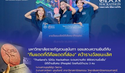 Blogนักศึกษา ทีมแดดที่ดีคือแดดที่ส่อง เด็กสวนสุนันทา ชนะเลิศ “Thailand’s SDGs Hackathon ระดมความคิด พิชิตความยั่งยืน” tui sakrapee March 4, 2024 มหาวิทยาลัยราชภัฏสวนสุนันทาขอแสดงความยินดีกับนักศึกษาสวนสุนันทา นางสาวณัชชา บุญจันทร์ วิทยาลัยสถาปัตยกรรมศาสตร์ และนางสาวปริยากร อินทะสระ คณะศิลปกรรมศาสตร์ และทีมแดดที่ดีคือแดดที่ส่อง ที่ได้รับรางวัลชนะเลิศ “Thailand’s SDGs Hackathon ระดมความคิด พิชิตความยั่งยืน” มิติด้านสังคม (People)…
