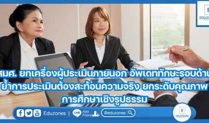 ครู-อาจารย์ สมศ. ยกเครื่องผู้ประเมินภายนอก อัพเดททักษะรอบด้าน ย้ำการประเมินต้องสะท้อนความจริง ยกระดับคุณภาพการศึกษาเชิงรูปธรรม EZ Webmaster March 4, 2024 สำนักงานรับรองมาตรฐานและประเมินคุณภาพการศึกษา (สมศ.) เตรียมความพร้อมผู้ประเมินภายนอกก่อนลงพื้นที่ประเมินสถานศึกษากลางปีนี้ พร้อมพัฒนาหลักสูตรเพื่ออบรมเพิ่มศักยภาพผู้ประเมินอย่างรอบด้าน ทั้งการทดสอบสมรรถนะเทคโนโลยีดิจิทัล (Digital Literacy) หลักสูตรการอบรมพัฒนาศักยภาพผู้ประเมินภายนอกด้วยการเรียนรู้ผ่านอิเล็กทรอนิกส์ (e – Learning) จากนั้นพิจารณาร่วมกับคะแนนผลการประเมินการปฏิบัติงานผู้ประเมินภายนอก (QC 100) เพื่อเข้ารับการฝึกอบรมเชิงปฏิบัติการเพื่อทดสอบสมรรถนะผู้ประเมินภายนอก โดย สมศ. ได้ให้ความสำคัญกับการพัฒนาศักยภาพผู้ประเมินภายนอก เพราะผู้ประเมินภายนอกเป็นเสมือนตัวแทนของ…