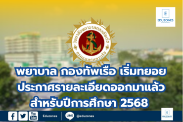 ราชมงคลพระนคร ร่วมสนับสนุนกิจกรรมในงานกระตุ้นเศรษฐกิจรัชดา-ประชาชื่น สำนักงานเขตบางซื่อ tui sakrapeeApril 9, 2026 ดร.ณัฐวรพล รัชสิริวัชรบุล อธิการบดีมหาวิทยาลัยเทคโนโลยีราชมงคลพระนคร มอบหมายให้ ผศ.ศรัทธา แข่งเพ็ญแข ผู้ช่วยอธิการบดี เข้าร่วมประชุมและประสานงาน โดยมีผศ.ดร.ยุทธภูมิ สุวรรณเวช รองอธิการบดี เป็นผู้กำกับดูแลในการสนับสนุน จัดกิจกรรมในงานกระตุ้นเศรษฐกิจรัชดา-ประชาชื่น โดยสำนักงานเขตบางซื่อ ซึ่งจัดในพื้นที่บริเวณสวนสุขภาพแยกประชานุกูล ระหว่างวันที่ 19-27 มี.ค.2569… มหาวิทยาลัยกรุงเทพ จับมือ Omnicom Media Thailand ประกาศก้าวสู่ Creative Ecosystem ระดับสากล เปิดหลักสูตร Global Creator and Influencer Branding รับโลกคอนเทนต์ยุค AI tui sakrapeeApril 8, 2026 มหาวิทยาลัยกรุงเทพ ตอกย้ำการเป็นมหาวิทยาลัยสร้างสรรค์ (Creative University) ผนึกกำลังกับ Omnicom Media Thailand พันธมิตรเอเจนซี่สื่อชั้นนำระดับโลก ลงนามความร่วมมือ (MoU) ยกระดับระบบนิเวศการเรียนรู้สู่ระดับสากล พร้อมเปิดตัวหลักสูตรสุดล้ำ “Global Creator and Influencer Branding”… EZ WebmasterApril 8, 2026 ทาโร ผนึกความร่วมมือกับ สำนักหอสมุดกลาง มหาวิทยาลัยศรีนครินทรวิโรฒ (มศว)) สำนักหอสมุดกลาง มศว เดินหน้าสร้างสรรค์โลกแห่งการเรียนรู้ ยกระดับห้องเรียนยุคใหม่ในรูปแบบ Edutainment ภายใต้โครงการ “บอร์ดเกม นวัตกรรมเสริมทักษะ สอนสนุก สำหรับครูนิวเทรนด์” เปลี่ยนห้องเรียนให้ “สนุก คิดเป็น… เปิดบ้าน ‘DPU Open House 2026’ ชวน GEN Z ค้นหาตัวตน ปลุกศักยภาพเปลี่ยนอนาคต EZ WebmasterApril 8, 2026 อนาคตเริ่มที่นี่! มหาวิทยาลัยธุรกิจบัณฑิตย์ (DPU) เปิดบ้านรับ GEN Z ร่วมค้นหาศักยภาพ ‘ปลุกพลังความเป็นที่ 1 ในตัวคุณ’ ผ่านกิจกรรม ‘DPU Open House 2026’ พร้อมอัปเดตเทรนด์ใหม่ ‘หลักสูตร–ทักษะ’ เพื่อปลุกศักยภาพเปลี่ยนอนาคต… Search for: Search Classic Blog พยาบาล กองทัพเรือ เริ่มทยอยประกาศรายละเอียดออกมาแล้ว สำหรับปีการศึกษา 2568 EZ Webmaster January 6, 2025 พยาบาล กองทัพเรือ เริ่มทยอยประกาศรายละเอียดออกมาแล้ว สำหรับปีการศึกษา 2568 โดยสามารถอ่านข้อมูลเพิ่มเติมได้ดังนี้ ไม่เข้าร่วม TCAS : การรับสมัครจะไม่ใช้ระบบ TCAS ดังนั้นการสมัครจะทำโดยตรงกับวิทยาลัยพยาบาลกองทัพเรือ ทุนการศึกษา : นักเรียนที่เข้าเรียนจะได้รับทุนการศึกษาตลอดหลักสูตร ซึ่งหมายความว่าไม่ต้องกังวลเรื่องค่าใช้จ่ายในระหว่างการศึกษา และเมื่อเรียนจบจะได้รับการบรรจุเป็นพยาบาลในกองทัพเรือทันที เปิดรับสมัครนักเรียนจาก ม.6 และเด็กซิ่ว : นักเรียนที่จบการศึกษาระดับมัธยมศึกษาปีที่ 6 สามารถสมัครได้ เด็กซิ่ว (นักเรียนที่หยุดเรียนจากสถาบันอื่นและต้องการกลับมาเรียนใหม่) ก็สามารถสมัครได้เช่นกัน และไม่มีการกำหนดเกรดเฉลี่ยขั้นต่ำ ซึ่งถือเป็นโอกาสที่ดีสำหรับผ