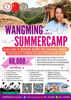 Wangming Summercamp ครั้งที่ 8 ลัดฟ้าเรียนภาษาจีนและเรียนรู้วัฒนธรรมกับเจ้าของภาษา ครบถ้วน ตรงเป้าที่สุด!! tui sakrapee January 6, 2025 โครงการ Wangming Summercamp ครั้งที่ 8 บ้านภาษาหวางหมิง ร่วมกับ มหาวิทยาลัยภาษาและวัฒนธรรมปักกิ่ง จัดกิจกรรมเรียนภาษาจีนและเรียนรู้ วัฒนธรรมกับเจ้าของภาษา ณ โรงเรียนภาษาจีนนานาชาติ มหาวิทยาลัยภาษาและวัฒนธรรมปักกิ่ง หลักสูตรภาษาจีนระยะสั้น 3 สัปดาห์ (นานาชาติ) ตั้งแต่วันที่ 5 – 25 เมษายน 2568 (1) เป้าหมาย พัฒนาความสามารถและความเข้าใจภาษาจีนของนักเรียนอย่างรวดเร็วในสภาพแวดล้อมต่างๆกัน พัฒนาทักษะการสื่อสารและเรียนรู้วัฒนธรรมจีน (2) การสอน หลักสูตรภาษาจีนขั้นพื้นฐาน: เน้นการฟัง การพูด การอ่านและการเขียนในสถานการณ์จริง และการ ปลูกฝังทักษะการสื่อสารภาษาจีนโดยตรงจากเจ้าของภาษา หลักสูตรประสบการณ์ทางวัฒนธรรม: เพื่อเพิ่มประสบการณ์และทักษะการใช้ภาษาจีนของนักเรียน ผ่านการมีปฏิสัมพันธ์ทั้งในห้องและนอกสถานที่ (3) เวลา มีการสอนภาษาจีนขั้นพื้นฐานในตอนเช้า และมีการบรรยายด้านวัฒนธรรมและหลักสูตรประสบการณ์ทางวัฒนธรรมในช่วงบ่าย… Continue Reading