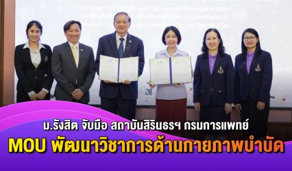 นักศึกษานักเรียน ม.รังสิต จับมือ สถาบันสิรินธรฯ กรมการแพทย์ MOU พัฒนาวิชาการด้านกายภาพบำบัด EZ Webmaster February 28, 2024 คณะกายภาพบำบัดและเวชศาสตร์การกีฬา มหาวิทยาลัยรังสิต ร่วมกับ สถาบันสิรินธรเพื่อการฟื้นฟูสมรรถภาพทางการแพทย์แห่งชาติ กรมการแพทย์ กระทรวงสาธารณสุข ลงนามความร่วมมือพัฒนาวิชาการด้านกายภาพบำบัด นายแพทย์ศุภชัย คุณารัตนพฤกษ์ รองอธิการบดีฝ่ายการแพทย์และวิทยาศาสตร์สุขภาพ มหาวิทยาลัยรังสิต กล่าวว่า การลงนามความร่วมมือครั้งนี้เป็นอีกความร่วมมือหนึ่งที่มหาวิทยาลัยรังสิต และกรมการแพทย์ กระทรวงสาธารณสุข ได้ประสานงานร่วมกัน…