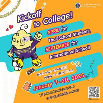 tui sakrapee December 27, 2024 มหิดลอินเตอร์ เปิดรับนักศึกษาใหม่ระดับปริญญาตรี 17 หลักสูตร ทางออนไลน์ วันที่ 7 – 20 มกราคม 2568 tui sakrapee December 27, 2024 วิทยาลัยนานาชาติ มหาวิทยาลัยมหิดล (มหิดลอินเตอร์) เปิดรับสมัครนักศึกษาใหม่ระดับปริญญาตรี หลักสูตรนานาชาติ รอบที่ 4 ประจำปีการศึกษา 2565-2566 จำนวน 17 หลักสูตรทางออนไลน์ ระหว่างวันที่ วันที่ 7 – 20 มกราคม 2568 โดยมีรายละเอียดดังนี้ หลักสูตรนิเทศศาสตรบัณฑิต (BACHELOR OF COMMUNICATION ARTS : B.COM.ARTS) – สาขาวิชาสื่อและการสื่อสาร (Media and Communication) หลักสูตรศิลปกรรมศาสตรบัณฑิต (BACHELOR OF FINE… Continue Reading