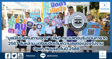 EZ Webmaster December 24, 2024 “มูลนิธิช่วยคนตาบอดฯ” ปลื้ม! กระแสตอบรับงานกาชาด 2567 ล้นหลาม เตรียมจัดเต็มความสุขต่อเนื่องในงาน Open House ต้นปี 2568 EZ Webmaster December 24, 2024 บรรยากาศภายในงาน “กาชาด 2567” ที่จัดขึ้นไปแล้วระหว่างวันที่ 11-22 ธ.ค.ที่ผ่านมา เต็มไปด้วยความคึกคัก โดยเฉพาะที่บูธของ “มูลนิธิช่วยคนตาบอดแห่งประเทศไทย ในพระบรมราชินูปถัมภ์” ที่ได้รับความสนใจจากประชาชนเป็นจำนวนมาก รวมถึงเหล่าศิลปินดาราและแขกรับเชิญที่พร้อมใจตบเท้ามาร่วมงานอย่างอบอุ่น กับกิจกรรม #ปิดตาเปิดใจ #ช่วยคนตาบอด เพื่อเป็นส่วนหนึ่งในการสนับสนุนผู้พิการทางการเห็น พร้อมแย้มงานใหญ่ของมูลนิธิช่วยคนตาบอดฯ ที่เตรียมจะจัดมหกรรมความสุขและสนุก เปิดบ้านแนะนำ “พิพิธภัณฑ์แห่งการเรียนรู้” โดยเปิดพื้นที่การเรียนรู้และสร้างแรงบันดาลใจใหม่สำหรับทุกคน ทั้งคนตาดีและผู้พิการทางการเห็น ในช่วงต้นปี 2568 อีกด้วย นางเสาวณี สุวรรณชีพ ประธานกรรมการมูลนิธิช่วยคนตาบอดแห่งประเทศไทย ในพระบรมราชินูปถัมภ์ เปิดเผยถึงความสำเร็จของมูลนิธิฯ ในการเข้าร่วมงานกาชาด ประจำปี… Continue Reading