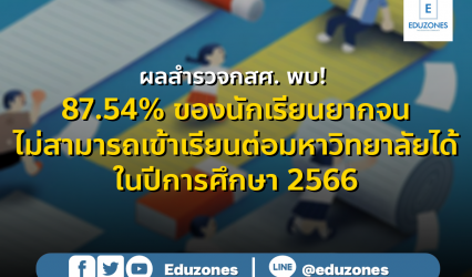 Blogนักศึกษานักเรียน ผลสำรวจกสศ. พบ! 87.54% ของนักเรียนยากจน ไม่สามารถเข้าเรียนต่อมหาวิทยาลัยได้ในปีการศึกษา 2566 EZ Webmaster February 22, 2024 หลังจากการระบาดของโรคโควิด-19 ที่ผ่านมานั้น ส่งผลให้เศรษฐกิจของไทยเกิดวิกฤติอย่างมากมายมหาศาล เห็นได้ชัดจากสถานการณ์เงินเฟ้อที่ทำให้ค่าครองชีพต่าง ๆ แพงขึ้น สิ่งเหล่านี้ถือเป็นปัจจัยสำคัญที่ช่วยเร่งให้สถานการณ์ความเหลื่อมล้ำทางการศึกษานั้นรุนแรงยิ่งขึ้นไปอีก เพราะเมื่อค่าครองชีพสูง ก็จะทำให้ผู้ปกครองมีกำลังจ่ายลดลง และไม่สามารถแบกรับภาระค่าใช้จ่ายด้านการศึกษาได้ ดังนั้นภาวะความยากจนจึงเป็นอุปสรรคสำคัญที่ทำให้เด็กบางคนต้องออกจากระบบการศึกษาไปในที่สุด เมื่อความเป็นอยู่ขัดข้อง เรื่องของปากท้องก็ย่อมมาก่อนเรื่องอื่น ๆ จากรายงานสถานการณ์ความเหลื่อมล้ำทางการศึกษาปี 2566…