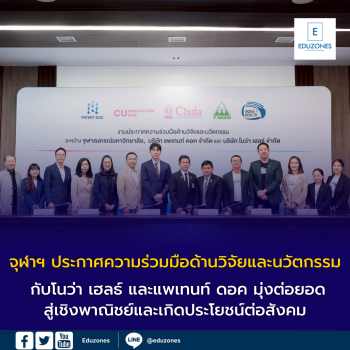 จุฬาฯ ประกาศความร่วมมือด้านวิจัยและนวัตกรรม กับโนว่า เฮลธ์ และแพเทนท์ ดอค มุ่งต่อยอดสู่เชิงพาณิชย์และเกิดประโยชน์ต่อสังคม EZ Webmaster January 26, 2026 จุฬาฯ ประกาศความร่วมมือด้านวิจัยและนวัตกรรมกับโนว่า เฮลธ์ และแพเทนท์ ดอคมุ่งต่อยอดสู่เชิงพาณิชย์และเกิดประโยชน์ต่อสังคม จุฬาลงกรณ์มหาวิทยาลัย ร่วมมือกับบริษัท โนว่า เฮลธ์ จำกัด บริษัทในเครือบริษัท ที.แมน ฟาร์มา ซูติคอล จำกัด (มหาชน) และบริษัท แพเท้นท์ ดอค จำกัด จัดงานประกาศความร่วมมือด้านวิจัยและนวัตกรรม เมื่อวันที่ 22 มกราคม 2569 ณ ห้อง 202 อาคารจามจุรี 4 เพื่อแสดงเจตนารมณ์การผนึกกำลังระหว่างสถาบันการศึกษากับภาคเอกชนในการพัฒนางานวิจัย เทคโนโลยี และนวัตกรรมที่สามารถนำไปใช้ประโยชน์ได้จริง ทั้งในเชิงพาณิชย์และเชิงสังคมอย่างเป็นรูปธรรม โดยมี ศ.นพ.รังสรรค์ ฤกษ์นิมิตร ผู้ช่วยอธิการบดี ด้านนวัตกรรม จุฬาลงกรณ์มหาวิทยาลัย คุณประพล ฐานะโชติพันธ์… Continue Reading