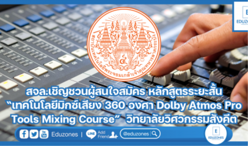 นักศึกษานักเรียน สจล.เชิญชวนผู้สนใจสมัคร หลักสูตรระยะสั้น “เทคโนโลยีมิกซ์เสียง 360 องศา Dolby Atmos Pro Tools Mixing Course” วิทยาลัยวิศวกรรมสังคีต EZ Webmaster February 16, 2024 วิทยาลัยวิศวกรรมสังคีต สถาบันเทคโนโลยีพระจอมเกล้าเจ้าคุณทหารลาดกระบังกำหนดจัดงานอบรมหลักสูตรระยะสั้น “เทคโนโลยีมิกซ์เสียง360 องศา Dolby Atmos Pro Tools Mixing Course” ให้กับบุคคลที่สนใจสมัครเรียน สอนโดย อาจารย์ผู้เชี่ยวชาญด้าน Dolby Atmos Mixing…