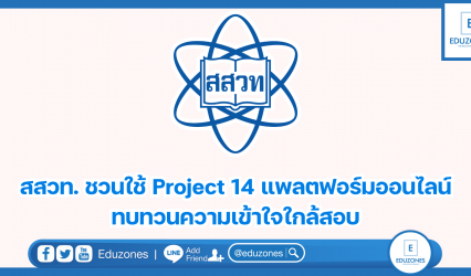 นักเรียน สสวท. ชวนใช้ Project 14 แพลตฟอร์มออนไลน์ ทบทวนความเข้าใจใกล้สอบ EZ Webmaster February 16, 2024 ใกล้สอบแล้ว ทบทวนการเรียนการสอนเพิ่มความเข้าใจชัดเจน สถาบันส่งเสริมการสอนวิทยาศาสตร์และเทคโนโลยี (สสวท.) ชวนใช้ Project 14 แพลตฟอร์มการเรียนออนไลน์ที่พัฒนาขึ้นเป็นช่องทางช่วยสอน ลดช่องว่างการเรียนรู้วิทยาศาสตร์ คณิตศาสตร์ และเทคโนโลยี โดยเน้นให้ผู้เรียนได้ลงมือปฏิบัติ สังเกต คิด วิเคราะห์ แก้ปัญหาผ่านตัวอย่างการทดลองที่เชื่อมโยงกับชีวิตประจำวัน รวมคลิปการสอนมากกว่า 2,500 คลิป ตั้งแต่ระดับประถมศึกษาถึงมัธยมศึกษา…
