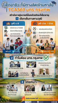 มทร.กรุงเทพ เปิดทางลัดสู่รั้วมหาวิทยาลัย TCAS69 รับตรงหลายวุฒิ ม.6–ปวช.–ปวส. พร้อมอัดแพ็กเกจทุนใหญ่ “เรียนฟรี ลดภาระ เพิ่มโอกาส” ตอบโจทย์สายอาชีพยุคใหม่ tui sakrapee January 26, 2026 มทร.กรุงเทพ เปิดทางลัดสู่รั้วมหาวิทยาลัย TCAS69 รับตรงหลายวุฒิ ม.6–ปวช.–ปวส. พร้อมอัดแพ็กเกจทุนใหญ่ “เรียนฟรี ลดภาระ เพิ่มโอกาส” ตอบโจทย์สายอาชีพยุคใหม่ มหาวิทยาลัยเทคโนโลยีราชมงคลกรุงเทพ (มทร.กรุงเทพ) ประกาศเปิดรับสมัครนักศึกษาใหม่ ประจำปีการศึกษา 2569 อย่างเป็นทางการ ภายใต้ระบบ TCAS69 เดินหน้านโยบาย “เปิดกว้างทุกเส้นทางการศึกษา” รองรับผู้จบการศึกษาทั้งสายสามัญและสายอาชีพ ครอบคลุมผู้สำเร็จการศึกษา ระดับมัธยมศึกษาปีที่ 6 (ม.6) ประกาศนียบัตรวิชาชีพ (ปวช.) และประกาศนียบัตรวิชาชีพชั้นสูง (ปวส.) เพื่อขยายโอกาสให้เยาวชนไทยเข้าสู่การศึกษาระดับอุดมศึกษาที่เน้นทักษะวิชาชีพจริง และสอดคล้องกับความต้องการของตลาดแรงงานยุคดิจิทัล สำหรับผู้จบการศึกษา ระดับ ม.6 มทร.กรุงเทพ เปิดรับสมัครผ่านระบบ TCAS69 ในหลายคณะและสาขาวิชา อาทิ สายเทคโนโลยี วิศวกรรมศาสตร์ บริหารธุรกิจ… Continue Reading