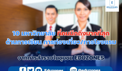 นักศึกษานักเรียน 10 มหาวิทยาลัย ที่คนนึกถึงมากที่สุด ด้านการเรียน การท่องเที่ยว/การโรงแรม จากการสำรวจของ EDUZONES EZ Webmaster February 7, 2024 ถ้าพูดถึงการเรียน การท่องเที่ยว/การโรงแรม ทุกคนจะนึกถึงมหาวิทยาลัยไหน ทาง EDUZONES ได้สำรวจความคิดเห็นของคนส่วนใหญ่ในชุมชน ในหัวข้อ ถ้านึกถึงการเรียนการท่องเที่ยว/การโรงแรม ทุกคนนึกถึงมหาวิทยาลัยไหน เริ่มเก็บข้อมูลตั้งแต่วันที่ 23 พฤศจิกายน 2566 จะมีที่ไหนบ้าง มาดูกันเลย อันดับที่ 1…