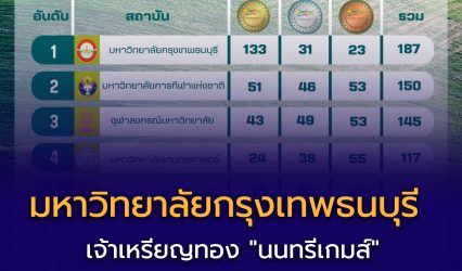 นักศึกษา สรุปเหรียญรางวัล “นนทรีเกมส์ 2567” กรุงเทพธนบุรีเจ้าเหรียญทอง EZ Webmaster February 6, 2024 สรุปเหรียญรางวัล การแข่งขันกีฬามหาวิทยาลัยแห่งประเทศไทย ครั้งที่ 49 “นนทรีเกมส์ 2567″ วันที่ 27 มกราคม- 5 กุมภาพันธ์ 2567 ณ มหาวิทยาลัยเกษตรศาสตร์ วิทยาเขตกำแพงแสน…