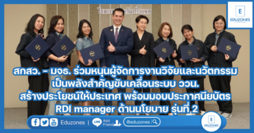 EZ Webmaster December 12, 2024 สกสว. – มจธ. ร่วมหนุนผู้จัดการงานวิจัยและนวัตกรรม เป็นพลังสำคัญขับเคลื่อนระบบ ววน. สร้างประโยชน์ให้ประเทศ พร้อมมอบประกาศนียบัตร RDI manager ด้านนโยบาย รุ่นที่ 2 EZ Webmaster December 12, 2024 สำนักงานคณะกรรมการส่งเสริม วิทยาศาสตร์ วิจัยและนวัตกรรม (สกสว.) ร่วมกับ สถาบันนโยบายวิทยาศาสตร์ เทคโนโลยีและนวัตกรรม (STIPI) มหาวิทยาลัยเทคโนโลยีพระจอมเกล้าธนบุรี (มจธ.) จัดพิธีปิดและมอบประกาศนียบัตรหลักสูตร “การพัฒนาผู้จัดการงานวิจัย พัฒนาและนวัตกรรม ด้านนโยบาย รุ่นที่ 2” หรือ RDI manager ที่ผ่านการอบรมในระยะเวลา 5 เดือน ตั้งแต่เดือนกรกฎาคม – พฤศจิกายน 2567 ผ่านกิจกรรมที่ให้ผู้เรียนได้ร่วมแลกเปลี่ยนประสบการณ์ที่เกี่ยวข้องกับการบริหารงานวิจัยและนวัตกรรม ด้วยการฝึกปฏิบัติจริงจนถึงกระบวนการถอดบทเรียน ให้แก่ผู้สำเร็จการฝึกอบรมจำนวน 34 คน จาก 28 หน่วยงาน รองศาสตราจารย์… Continue Reading