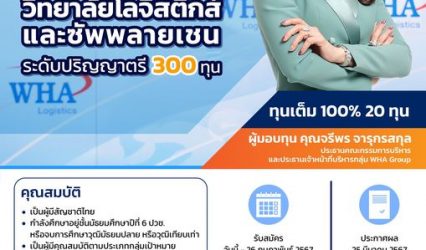 Blogทุนดีดี โลจิสติกส์ สวนสุนันทา เปิดให้ 300 ทุน บุคคลทั่วไปและคนพิการเรียนต่อระดับปริญญาตรี tui sakrapee February 1, 2024 วิทยาลัยโลจิสติกส์และซัพพลายเชน มหาวิทยาลัยราชภัฏสวนสุนันทา วิทยาเขตนครปฐม เปิดให้ทุนการศึกษา เรียนต่อระดับปริญญาตรี โดยได้รับมอบทุนจาก คุณจรีพร จารุกรสกุล ประธานคณะกรรมการบริษัทและประธานเจ้าหน้าที่บริหารกลุ่มบริษัท ดับบลิวเอชเอ คอร์ปอเรชั่น จำกัด (มหาชน) ซึ่งมอบทุนการศึกษา จำนวน 300…
