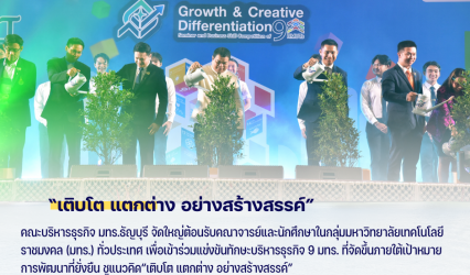 นักศึกษา “ราชมงคลธัญบุรี” จัดแข่งขันทักษะบริหารธุรกิจ 9 มทร. ชูแนวคิด “เติบโต แตกต่าง อย่างสร้างสรรค์” tui sakrapee February 2, 2024 คณะบริหารธุรกิจ มหาวิทยาลัยเทคโนโลยีราชมงคลธัญบุรี (มทร.ธัญบุรี) จัดใหญ่ต้อนรับคณาจารย์และนักศึกษาในกลุ่มมหาวิทยาลัยเทคโนโลยีราชมงคล (มทร.) ทั่วประเทศ เพื่อเข้าร่วมแข่งขันทักษะบริหารธุรกิจ 9 มทร. ที่จัดขึ้นภายใต้เป้าหมายการพัฒนาที่ยั่งยืน ชูแนวคิด“เติบโต แตกต่าง อย่างสร้างสรรค์” และจัดพิธีเปิดโครงการฯ ณ หอประชุมราชมงคล…
