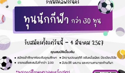 Blogทุนดีดีนักเรียน ราชมงคลพระนคร เปิดคัดคนเก่งกีฬา เข้าศึกษาต่อ ประจำปี 2567 จำนวน 30 ทุน tui sakrapee January 30, 2024 มหาวิทยาลัยเทคโนโลยีราชมงคลพระนคร เปิดรับสมัครและคัดเลือกนักศึกษาที่มีความสามารถทางกีฬาเด่น เข้าศึกษาต่อในระดับอุดมศึกษา ประเภททุนการศึกษาสำหรับนักศึกษาที่มีความสามารถพิเศษด้านกีฬา ประจำปีการศึกษา 2567 เพื่อเปิดโอกาสทางการศึกษาให้กับผู้ที่มีความสามารถเด่นชัดเชิงกีฬา และสนับสนุนส่งเสริมแผนพัฒนาการกีฬาของชาติ จำนวน 30 ทุน โดยชนิดกีฬาที่รับสมัคร ได้แก่ วอลเลย์บอล วอลเลย์บอลชายหาด ฟุตบอก…