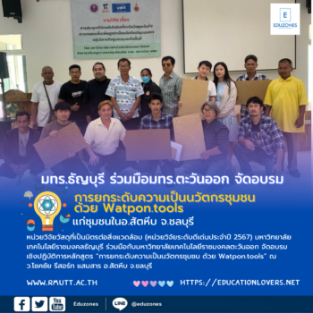 มทร.ธัญบุรี ร่วมมือมทร.ตะวันออก จัดอบรมหลักสูตร “การยกระดับความเป็นนวัตกรชุมชน ด้วย Watpon.tools” แก่ชุมชนในอ.สัตหีบ จ.ชลบุรี tui sakrapee December 4, 2024 #หน่วยวิจัยวัสดุที่เป็นมิตรต่อสิ่งแวดล้อม (หน่วยวิจัยระดับดีเด่นประจำปี 2567) มหาวิทยาลัยเทคโนโลยีราชมงคลธัญบุรี ฉลองความสำเร็จด้วยการสานต่องานวิจัยเพื่อชุมชนอย่างต่อเนื่อง จากงบประมาณหน่วยบริหารและจัดการทุนด้านการพัฒนาระดับพื้นที่ (บพท.) ภายใต้กรอบการวิจัย “การขยายผลเทคโนโลยีที่เหมาะสม (Appropriate Technology) เพื่อยกระดับเศรษฐกิจฐานรากและแก้หนี้ครัวเรือน” ภายใต้แผนงานย่อยรายประเด็น “การเพิ่มความเข้มแข็งของเศรษฐกิจฐานรากเพื่อให้มีศักยภาพในการแข่งขัน สามารถพึ่งพาตนเองได้และกระจายรายได้สู่ชุมชนท้องถิ่น” ประจำปีงบประมาณ 2567 วันที่ 2 – 3 ธันวาคม 2567 ผู้ช่วยศาสตราจารย์ ดร.ประชุม คำพุฒ หัวหน้าหน่วยวิจัยวัสดุที่เป็นมิตรต่อสิ่งแวดล้อม คณะวิศวกรรมศาสตร์ มหาวิทยาลัยเทคโนโลยีราชมงคลธัญบุรี หัวหน้าเรื่อง “การขยายผลเทคโนโลยีที่เหมาะสมในการผลิตวัสดุก่อสร้างและตกแต่งจากขยะชุมชนเพื่อยกระดับเศรษฐกิจชุมชนในพื้นที่ชายฝั่งทะเลอ่าวไทย” ได้ร่วมมือกับมหาวิทยาลัยเทคโนโลยีราชมงคลตะวันออก โดย ผู้ช่วยศาสตราจารย์ ดร.สมทบ สันติเบ็ญจกุล รองผู้อำนวยการสถาบันวิจัยและพัฒนา มทร.ตะวันออก และ ดร.วุฒิชัย ยังสว่าง หัวหน้าโครงการวิจัย… Continue Reading