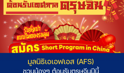 นักเรียน มูลนิธิเอเอฟเอส (AFS) ชวนน้องๆ ต้อนรับตรุษจีนปีนี้ กับโครงการ Short program in China EZ Webmaster January 26, 2024 📢 ต้อนรับตรุษจีนปีนี้ กับ โครงการรับสมัคร 𝙎𝙝𝙤𝙧𝙩 𝙥𝙧𝙤𝙜𝙧𝙖𝙢 𝙞𝙣 𝘾𝙝𝙞𝙣𝙖 ✏️ สมัครด่วน วันนี้ – 15 ก.พ.2567 เท่านั้น‼ ⚠…