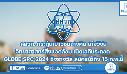 นักเรียน สสวท. กระตุ้นเยาวชนเก่งคิด เก่งวิจัย วิทยาศาสตร์สิ่งแวดล้อม เปิดเวทีประกวด GLOBE SRC 2024 ชิงรางวัล สมัครได้ถึง 15 ก.พ.นี้ EZ Webmaster January 18, 2024 สถาบันส่งเสริมการสอนวิทยาศาสตร์และเทคโนโลยี (สสวท.) โดยโครงการโลกศึกษาเพื่อพัฒนาสิ่งแวดล้อม (GLOBE) ขอเชิญนักเรียนระดับประถมศึกษาปีที่ 4 – มัธยมศึกษาปีที่ 6 พร้อมด้วยครูที่ปรึกษา สมัครเข้าร่วมประกวดผลงานวิจัยวิทยาศาสตร์สิ่งแวดล้อม ประจำปี 2567 GLOBE Student Research Competition 2024 (GLOBE…