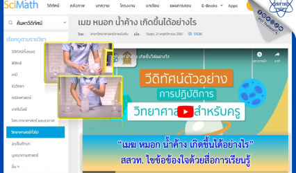 นักเรียน “เมฆ หมอก น้ำค้าง เกิดขึ้นได้อย่างไร” สสวท. ไขข้อข้องใจด้วยสื่อการเรียนรู้ EZ Webmaster January 11, 2024 สถาบันส่งเสริมการสอนวิทยาศาสตร์และเทคโนโลยี (สสวท.) ชวนสร้างความเข้าใจให้ชั้นเรียนกับสื่อการเรียนรู้ วีดิทัศน์ตัวอย่างการจัดกิจกรรมการจัดการเรียนรู้วิทยาศาสตร์ “เมฆ หมอก น้ำค้าง เกิดขึ้นได้อย่างไร” เพื่อนช่วยการจัดการเรียนการสอนของคุณครูประถมศึกษา ส่งเสริมการคิดพร้อมตัวอย่างการจัดกิจกรรม โดยสร้างแบบจำลอง และอธิบายการเกิดเมฆ หมอก น้ำค้าง ที่เพิ่มความเข้าใจให้ผู้เรียน คุณครูใช้เตรียมการสอนได้สะดวก ใช้งานฟรีที่ คลังความรู้ SciMath สสวท. https://www.scimath.org/video-science?start=204