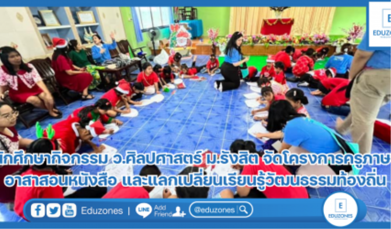นักศึกษา นักศึกษากิจกรรม ว.ศิลปศาสตร์ ม.รังสิต จัดโครงการครูภาษา อาสาสอนหนังสือ และแลกเปลี่ยนเรียนรู้วัฒนธรรมท้องถิ่น EZ Webmaster January 11, 2024 ฝ่ายกิจการนักศึกษา วิทยาลัยศิลปศาสตร์ มหาวิทยาลัยรังสิต จัดโครงการครูภาษา อาสาสอนหนังสือ และแลกเปลี่ยนเรียนรู้วัฒนธรรมท้องถิ่น นักศึกษาจะได้แลกเปลี่ยนเรียนรู้ระหว่างกันเกี่ยวกับการวางแผนการสอนภาษาให้กับน้องๆ และยังได้เผยแผ่ความรู้เกี่ยวกับภาษาอังกฤษ ภาษาจีน ภาษาเกาหลี และภาษาญี่ปุ่น นอกจากนี้ ยังได้สอนเกี่ยวกับวัฒนธรรมของแต่ละประเทศ น้องๆ จะได้จินตนาการ และได้สร้างแรงบันดาลใจ ไปกับภาษา ได้รู้จักอาหารประจำชาต…