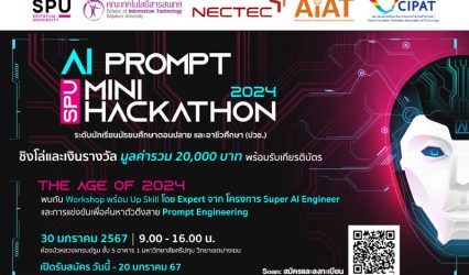 นักเรียนนักศึกษา SPU ชวนน้องๆ ม.ปลาย หรือ ปวช. สาย Prompt Engineering ห้ามพลาด!! เข้าร่วม SPU AI PROMPT MINI HACKATHON 2024 ชิงเงินรางวัลรวมกว่า 20,000 บาท EZ Webmaster January 5, 2024 คณะเทคโนโลยีสารสนเทศ มหาวิทยาลัยศรีปทุม ขอเชิญชวน น้องๆ ม.ปลาย หรือ ปวช. สาย Prompt Engineering ห้ามพลาด!! กับ SPU AI PROMPT MINI HACKATHON 2024…