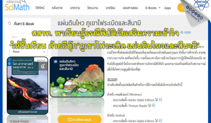 นักเรียน สสวท. พาเรียนรู้ธรณีพิบัติภัยเสริมความเข้าใจให้ชั้นเรียน ด้วยอีบุ๊ก “ภูเขาไฟระเบิด แผ่นดินไหวและสึนามิ” EZ Webmaster January 3, 2024 สถาบันส่งเสริมการสอนวิทยาศาสตร์และเทคโนโลยี (สสวท.) เสริมความเข้าใจธรณีวิทยากับสื่อการเรียนรู้อีบุ๊กเรื่อง ภูเขาไฟระเบิด แผ่นดินไหวและสึนามิ ธรณีพิบัติภัยที่เกิดจากกระบวนการเปลี่ยนแปลงทางธรณีวิทยา ส่งผลต่อสิ่งมีชีวิตและสิ่งแวดล้อมอย่างฉับพลันรุนแรง ไปศึกษาถึงสาเหตุ กระบวนการเกิด ผลที่จะเกิดขึ้น รวมทั้งแนวทางในการเฝ้าระวังและการปฏิบัติตนให้ปลอดภัย โดยเฉพาะยังช่วยให้มนุษย์เข้าใจถึงธรรมชาติของการเกิดธรณีพิบัติภัย และสามารถเตรียมพร้อมรับมือสถานการณ์เพื่อให้เกิดความสูญเสียน้อยที่สุด ใช้เป็นสื่อการเรียนรู้ในชั้นเรียนก็ได้ หรือ น้อง ๆ ทบทวนเสริมความเข้าใจก็สะดวก ดูรายละเอียดและดาวน์โหลดฟรีที่ คลังความรู้ SciMath สสวท. https://www.scimath.org/ebook-earthscience/item/8464 นอกจากนี้คุณครูสามารถดาวน์โหลดคู่มือครูรายวิชาเพิ่มเติมวิทยาศาสตร์และเทคโนโลยี โลก…