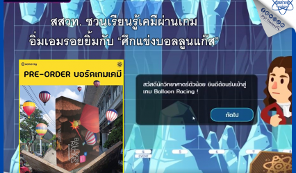 นักเรียน สสวท. ชวนเรียนรู้เคมีผ่านเกม อิ่มเอมรอยยิ้มกับ “ศึกแข่งบอลลูนแก๊ส” EZ Webmaster December 27, 2023 สถาบันส่งเสริมการสอนวิทยาศาสตร์และเทคโนโลยี (สสวท.) ชวนรู้จักบอร์ดเกมสุดแหวกแนวรอไม่ได้แล้วต้องรีบไปพบกับ ศึกแข่งบอลลูนแก๊ส สื่อการเรียนรู้วิชาเคมี เรื่องแก๊สและสมบัติของแก๊ส เกมน้ำดีสื่อเสริมการเรียนรู้สร้างความเข้าใจกฎของแก๊สและสมบัติของแก๊ส เพิ่มความเข้าใจทะลุปรุโปร่ง ข้อสำคัญเนื้อหาคุณภาพตรงตามหลักสูตร สสวท. สนุก ท้าทาย ได้ความรู้ คลิกที่คลังความรู้ SciMath สสวท. https://www.scimath.org/desktop-application/item/13067–balloon-racing ดูรายละเอียดที่ เพจสาขาเคมี สสวท. https://www.facebook.com/ChemistryIPST