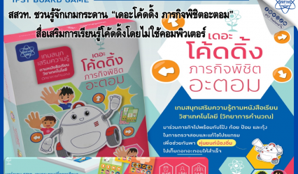 นักเรียน สสวท. ชวนรู้จักเกมกระดาน “เดอะโค้ดดิ้ง ภารกิจพิชิตอะตอม” สื่อเสริมการเรียนรู้โค้ดดิ้งโดยไม่ใช้คอมพิวเตอร์ EZ Webmaster December 28, 2023 สถาบันส่งเสริมการสอนวิทยาศาสตร์และเทคโนโลยี (สสวท.) แนะนำสื่อเสริมการเรียนรู้ผ่านเกม “เดอะโค้ดดิ้ง ภารกิจพิชิตอะตอม” เกมกระดานเพื่อการศึกษา เรียนรู้ โค้ดดิ้งโดยไม่ใช้คอมพิวเตอร์ (unplugged coding) ฝึกทักษะการคิดวิเคราะห์ แก้ปัญหา ผ่านภารกิจสุดท้าทายร่วมกับ 4 สหาย โป้ง ก้อย ป้อม และกุ้ง ทำการตรวจสอบและแก้ไขโปรแกรม เพื่อช่วยกันพา “หุ่นยนต์น้องอิ่ม” ไปเก็บดอกอะตอมให้สำเร็จ…