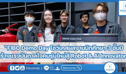 นักศึกษา “FIBO Demo Day โชว์เคสผลงานนักศึกษา 3 ชั้นปี สร้างแรงบันดาลใจคนรุ่นใหม่สู่ Robot & Ai Innovator” EZ Webmaster December 27, 2023 FIBO DEMO DAY เป็นกิจกรรมที่สถาบันวิทยาการหุ่นยนต์ภาคสนาม (ฟีโบ้) มหาวิทยาลัยเทคโนโลยีพระจอมเกล้าธนบุรี (มจธ.) จัดขึ้นเมื่อวันที่ 19 ธันวาคม 2566 ที่ผ่านมา เพื่อจัดแสดงผลงานการออกแบบแนวคิดและต้นแบบ (ideas & prototypes) ของนักศึกษาฟีโบ้ 3 ชั้นปี โดยชั้นปีที่ 1 หัวข้อ“นวัตกรรมเพื่อสังคมด้านอุตสาหกรรม การเกษตร ความปลอดภัย…