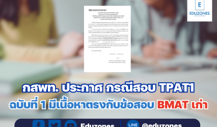 นักศึกษาข่าวเด่นนักเรียน กสพท. ประกาศ กรณีข้อสอบ #TPAT1 ฉบับที่1 มีเนื้อหาตรงกับข้อสอบ BMAT เก่า EZ Webmaster December 19, 2023 สพท ประกาศ กรณีข้อสอบ #TPAT1 ฉบับที่ 1 จำนวน 11 ข้อ มีเนื้อหาตรงกับข้อสอบ BMAT เก่า ผลการประชุมคณะกรรมการอำนวยการและกรรมการบริหาร กสพท มีมติให้ ตัดข้อสอบ ฉบับที่…