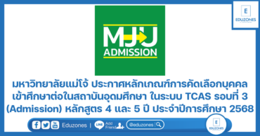 EZ Webmaster October 29, 2024 มหาวิทยาลัยแม่โจ้ ประกาศหลักเกณฑ์การคัดเลือกบุคคลเข้าศึกษาต่อในสถาบันอุดมศึกษา ในระบบ TCAS รอบที่ 3 (Admission) หลักสูตร 4 และ 5 ปี ประจำปีการศึกษา 2568 EZ Webmaster October 29, 2024 🛎🗣 เตรียมตัวให้พร้อม 🤩 สำหรับ TCAS รอบที่ 3 (Admission) 📌เพื่อให้น้องๆ ได้เตรียมตัวสมัครสอบ TGAT / TPAT / A-LEVEL ในช่วงนี้ 📣มหาวิทยาลัยแม่โจ้ : ประกาศหลักเกณฑ์การคัดเลือกบุคคลเข้าศึกษาต่อในสถาบันอุดมศึกษา ในระบบ TCAS รอบที่ 3 (Admission) หลักสูตร 4 และ 5 ปี ประจำปีการศึกษา 2568 🆕โดยได้กำหนดหลักเกณฑ์การคัดเลือก… Continue Reading