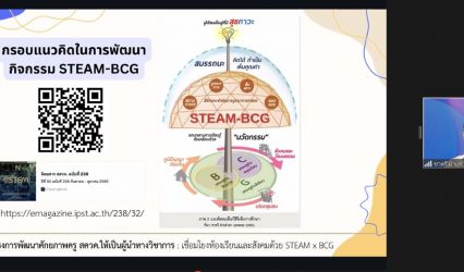 ครู-อาจารย์ สสวท. พัฒนาครู สควค. สร้างผู้นำการเรียนรู้ ตามแนว STEAM Education ชูโมเดลเศรษฐกิจ EZ Webmaster December 7, 2023 สถาบันส่งเสริมการสอนวิทยาศาสตร์และเทคโนโลยี (สสวท.) จัดอบรมโครงการพัฒนาศักยภาพครู สควค. ให้เป็นผู้นำทางวิชาการในการจัดการเรียนรู้ตามแนวทาง STEAM Education ด้วยโมเดลเศรษฐกิจ BCG (STEAM-BCG) เพื่อพัฒนาศักยภาพครูโครงการส่งเสริมการผลิตครูที่มีความสามารถพิเศษทางวิทยาศาสตร์และคณิตศาสตร์ (สควค.) ให้สามารถพัฒนานวัตกรรมการจัดการเรียนรู้ตามแนวทาง STEAM Education ให้สอดคล้องกับการขับเคลื่อนประเทศด้วยโมเดลเศรษฐกิจบีซีจี (BCG economy model) เพื่อพัฒนาผู้เรียนให้เกิดสมรรถนะหลักที่สอดคล้องกับการศึกษาฐานสมรรถนะ ทั้งนี้เป็นการอบรมโดยผ่านกระบวนการสร้างชุมชนการเรียนรู้ทางวิชาชีพ (Professional Learning Community :…