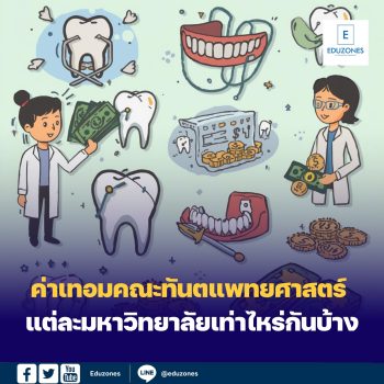 EZ Webmaster January 19, 2026 ค่าเทอมคณะทันตแพทยศาสตร์ แต่ละมหาวิทยาลัยเท่าไหร่กันบ้าง EZ Webmaster January 19, 2026 ค่าเทอมคณะทันตแพทยศาสตร์ แต่ละมหาวิทยาลัยเท่าไหร่กันบ้าง การเรียนทันตแพทยศาสตร์ต้องอาศัยความรู้ด้านวิทยาศาสตร์ ความละเอียดรอบคอบ ความอดทน และทักษะเชิงปฏิบัติสูง ใช้ระยะเวลาเรียน 6 ปี และเมื่อสำเร็จการศึกษาจะได้รับใบประกอบวิชาชีพ สามารถประกอบอาชีพได้ทั้งในหน่วยงานภาครัฐ คลินิกเอกชน โรงพยาบาล หรือเปิดคลินิกของตนเอง ทำให้คณะทันตแพทยศาสตร์เป็นอีกหนึ่งทางเลือกที่มั่นคงและท้าทายสำหรับผู้ที่ใฝ่ฝันอยากทำงานด้านการแพทย์และการดูแลผู้คน หนึ่งในปัจจัยสำคัญที่ผู้สนใจ พิจารณาควบคู่กับความสนใจ คือ ค่าเทอมของคณะทันตแพทยศาสตร์ ซึ่งแต่ละมหาวิทยาลัยมีอัตราที่แตกต่างกัน มหาวิทยาลัยรัฐบาล จุฬาลงกรณ์มหาวิทยาลัย หลักสูตรปกติ 1 ภาคการศึกษา 34,000 บาท ตลอดหลักสูตรภาคการศึกษา 408,000 บาท หลักสตูรภาคฤดูร้อน 8,500… Continue Reading