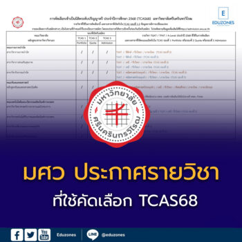 EZ Webmaster October 18, 2024 มศว ประกาศรายวิชาที่ใช้คัดเลือกเข้าเป็นนิสิตระดับปริญญาตรี TCAS68 EZ Webmaster October 18, 2024 มหาวิทยาลัยศรีนครินทรวิโรฒ ประกาศรายวิชาที่ใช้คัดเลือกเข้าเป็นนิสิตระดับปริญญาตรี TCAS ประจำปีการศึกษา 2568 โดยมีรายละเอียด ดังนี้ 1. สาขาวิชาที่เปิดรับในแต่ละรอบ 2. รายวิชา TGAT / TPAT / A-Level แต่ละหลักสูตร/สาขาวิชา/วิชาเอก ที่ใช้ในการคัดเลือกเฉพาะสาขาที่ใช้คะแนน เปิดรับใน TCAS รอบที่ 1 Portfolio หรือ รอบที่ 2 Quota หรือ รอบที่ 3 Admission 3.… Continue Reading