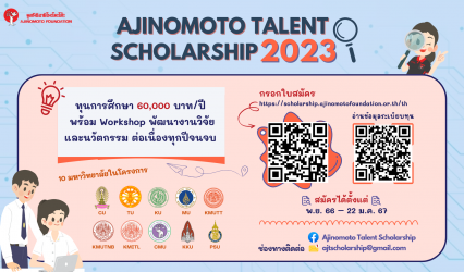 นักเรียนนักศึกษา เปิดรับสมัครนิสิต นักศึกษา เข้าร่วม โครงการทุนมูลนิธิอายิโนะโมะโต๊ะ เพื่อผู้เรียนดีมีศักยภาพเป็นเลิศ ปีการศึกษา 2566 EZ Webmaster December 1, 2023 มูลนิธิอายิโนะโมะโต๊ะ เปิดรับสมัครนิสิต นักศึกษา เพื่อขอรับทุนต่อเนื่องจนจบหลักสูตรการศึกษา 4 ปี ตามโครงการ “ทุนมูลนิธิอายิโนะโมะโต๊ะ เพื่อผู้เรียนดีมีศักยภาพเป็นเลิศ รุ่นที่ 8 ประจำปีการศึกษา 2566” จำนวนเงินทุน 60,000 บาท…