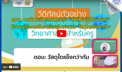 นักเรียน สสวท. ชวนคิดสะกิดการทดลองกับ “วีดิทัศน์ปฏิบัติการวิทย์” ตัวอย่างกิจกรรมจัดการเรียนรู้หาคำตอบ “วัสดุใดแข็งกว่ากัน” EZ Webmaster November 28, 2023 สถาบันส่งเสริมการสอนวิทยาศาสตร์และเทคโนโลยี (สสวท.) ชวนเสริมทักษะการสอนสร้างความเข้าใจให้ชั้นเรียน กับ วีดิทัศน์ปฏิบัติการวิทย์ นำเสนอตัวอย่างการจัดกิจกรรมการจัดการเรียนรู้วิทยาศาสตร์สอดคล้องกับหนังสือเรียน ด้วยคลิปการทดลองสั้นหลากหลาย อาทิ หัวข้อ วัสดุใดแข็งกว่ากัน ระหว่างวัสดุที่ทำจากแก้ว พลาสติก กระเบื้อง ไม้ อะลูมิเนียม และ เหล็ก กระตุ้นให้นักเรียนสังเกตุ คิด วิเคราะห์ เพื่อหาคำตอบ สร้างความรู้ความเข้าใจ เชื่อมโยงสู่ชั้นเรียนได้ง่ายด้วยวัสดุใกล้ตัว คลิกชมได้ที่ คลังความรู้ SciMath สสวท. https://www.scimath.org/video-science/item/8055-2018